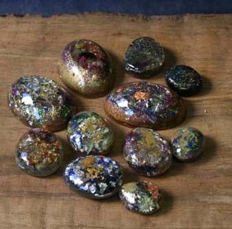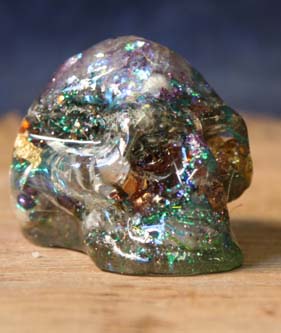 is Orgonite ? -> When I met this fairy-looking matter, I was immediately seduced, I discovered it had also some nice properties and so environment-friendly ... Neither one nor two, I dove in, time and space are then melted, combined into a variation of objects and small Artworks