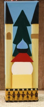 | Technique mixte, Huile & Orgonite Titre: Stupa, minarets et clocher..sapin d'avant Noël Technique: huile sur toile et collage de mosaïques (oil) Format: 60x20x7cm 23.6x7.9x2.7inch Prix: € $ CHF Au plus offrant 40% sera versé à une oeuvre humanitaire en relation avec le thème de l'exposition. mes cotations Drouot 333- 5555€ pour acquérir une de ces oeuvres: faire une offre --> Byblos@mybyblos.com